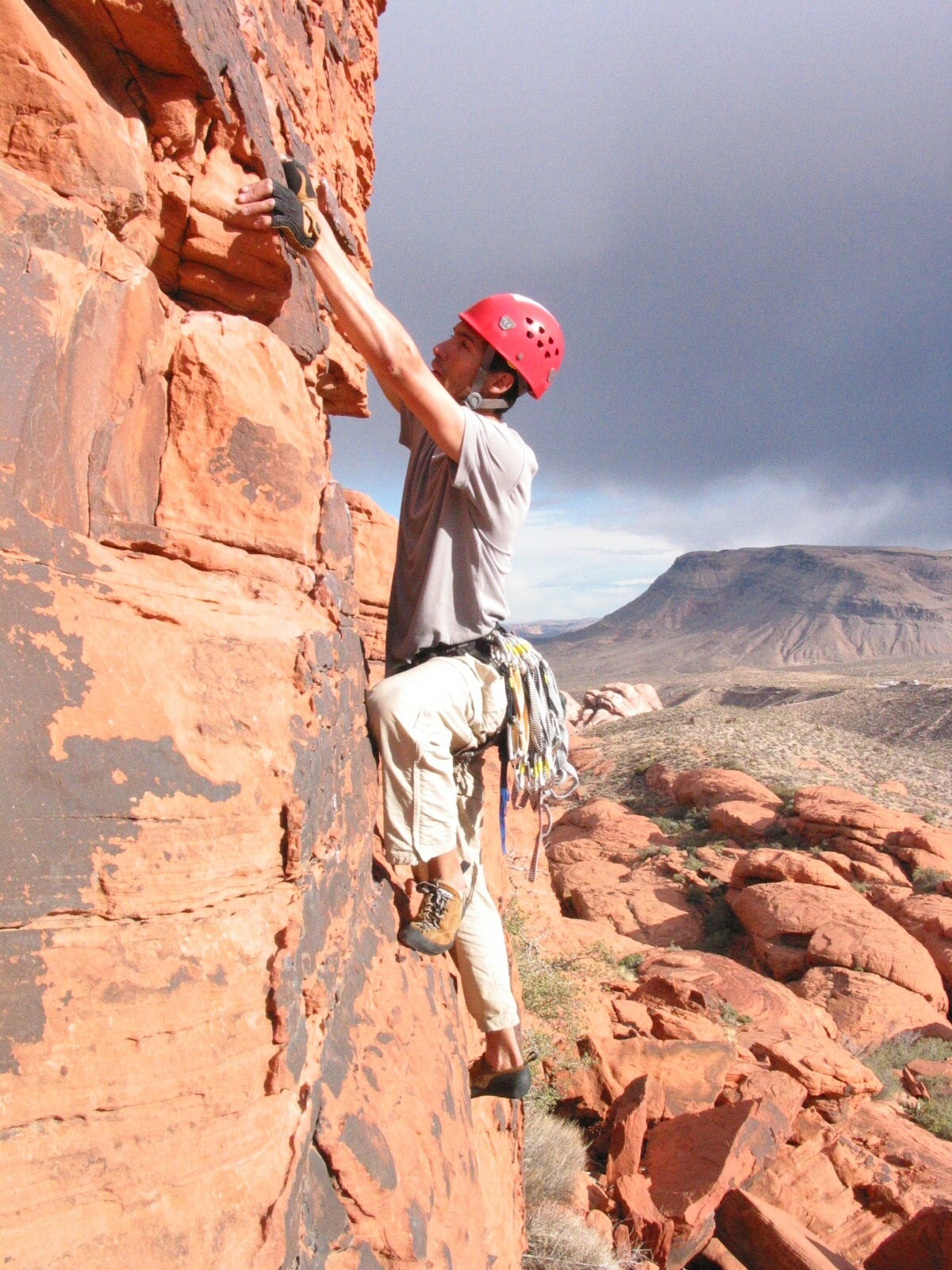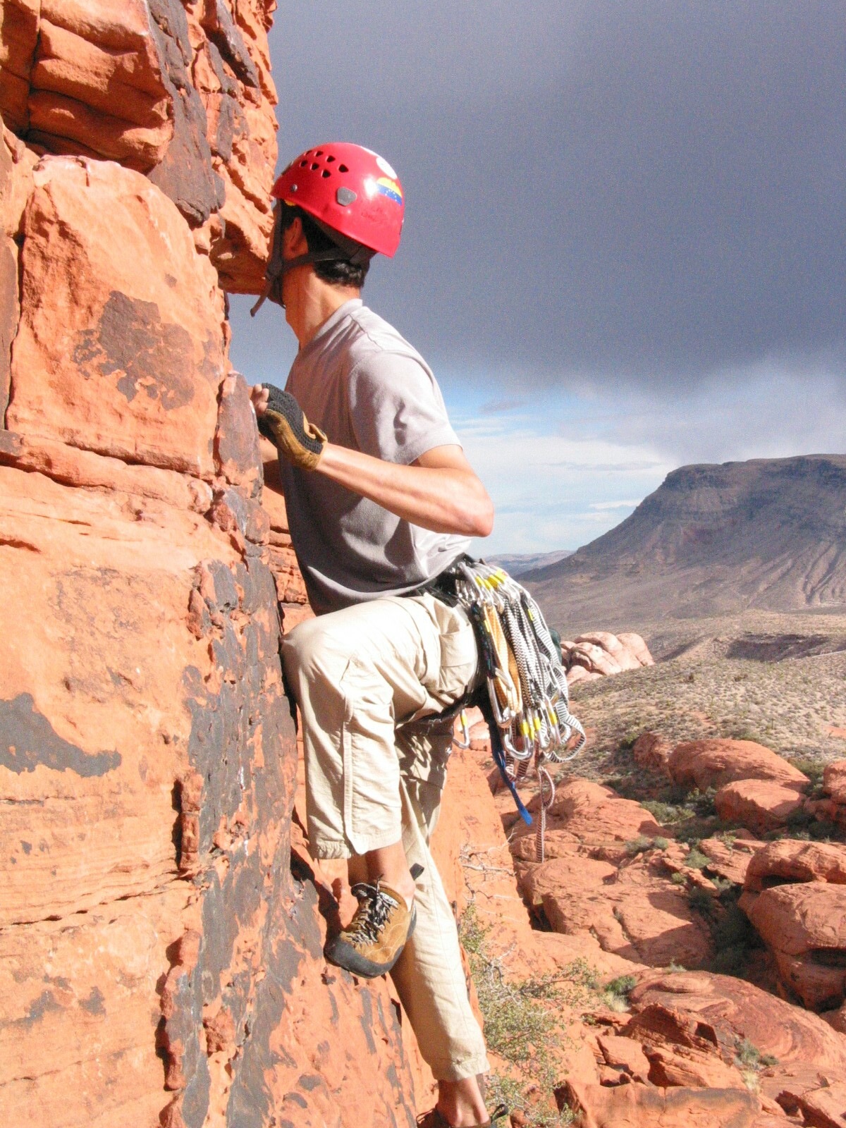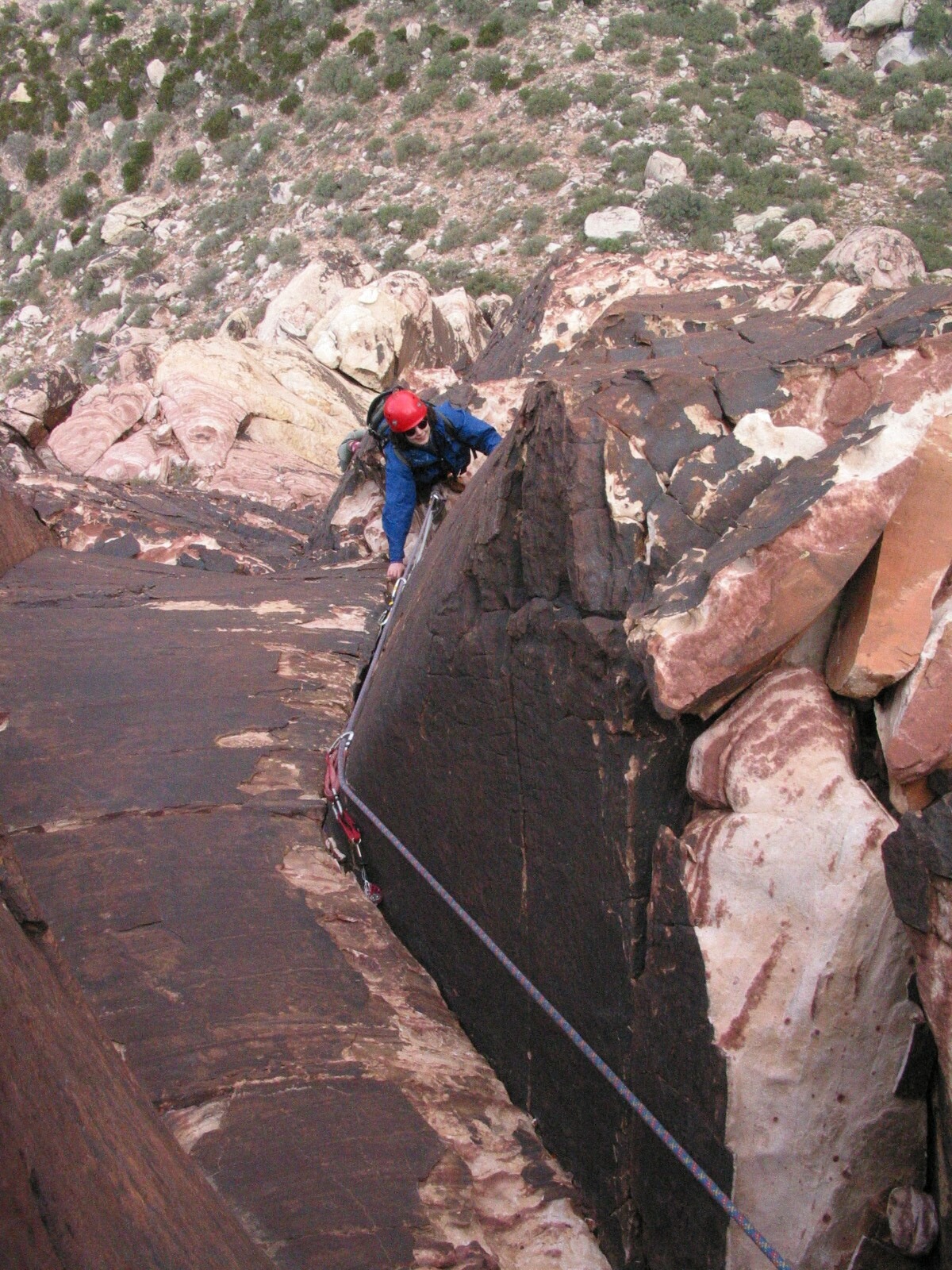 P6 5.9 75' lead. Saved the 3.5 Camelot for right below the belay.